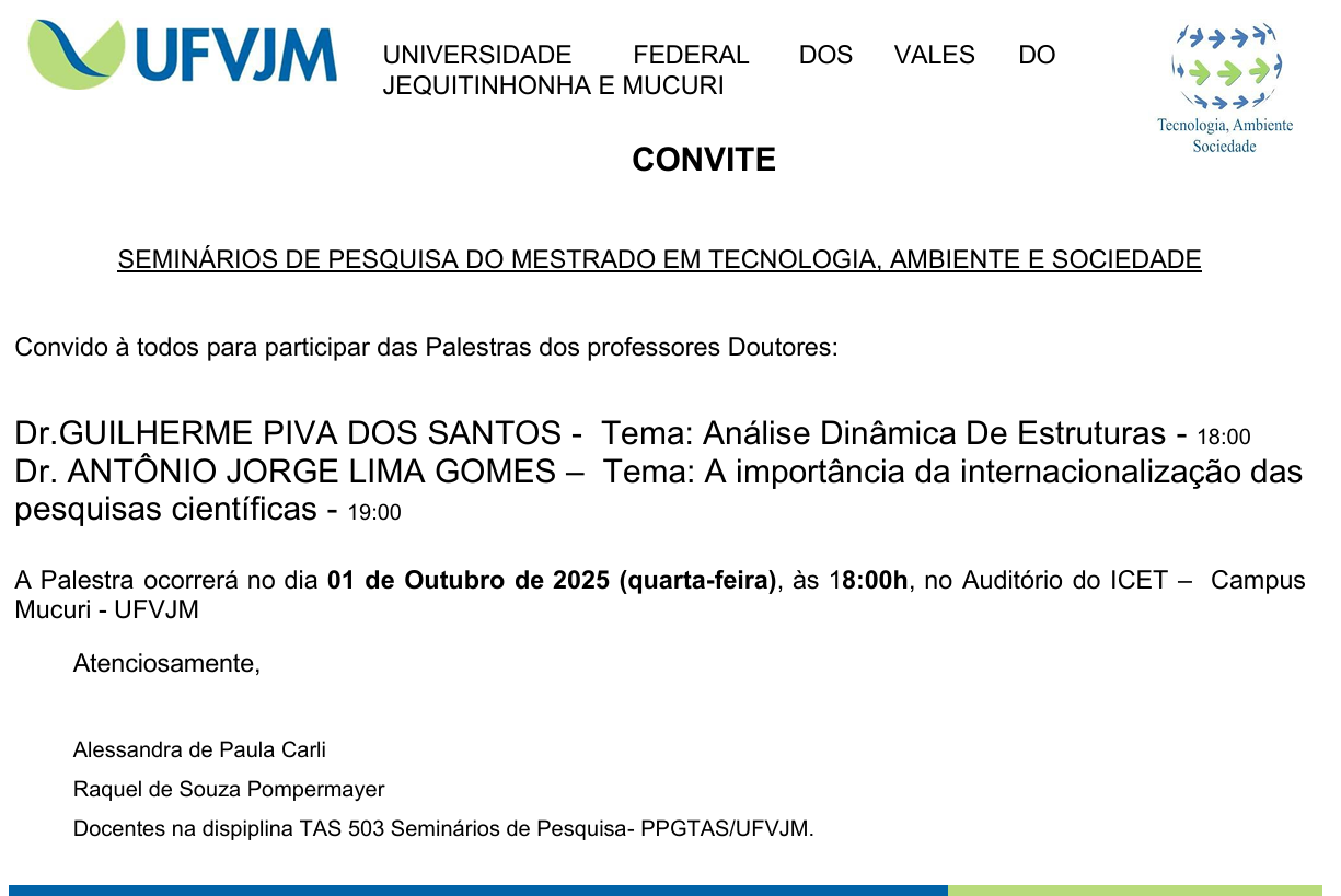 Convite – Seminários de Pesquisa do Mestrado em Tecnologia, Ambiente e Sociedade
