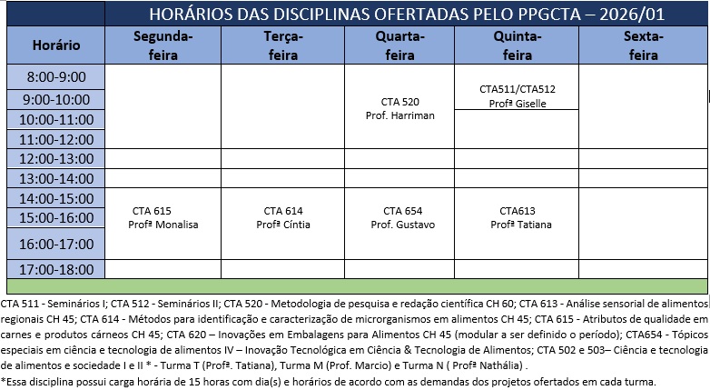 O Resultado das Etapas Seletivas para vaga de estágio pós-doutoral do PPGCTA foi divulgado e pode ser acessado pelo arquivo abaixo:
